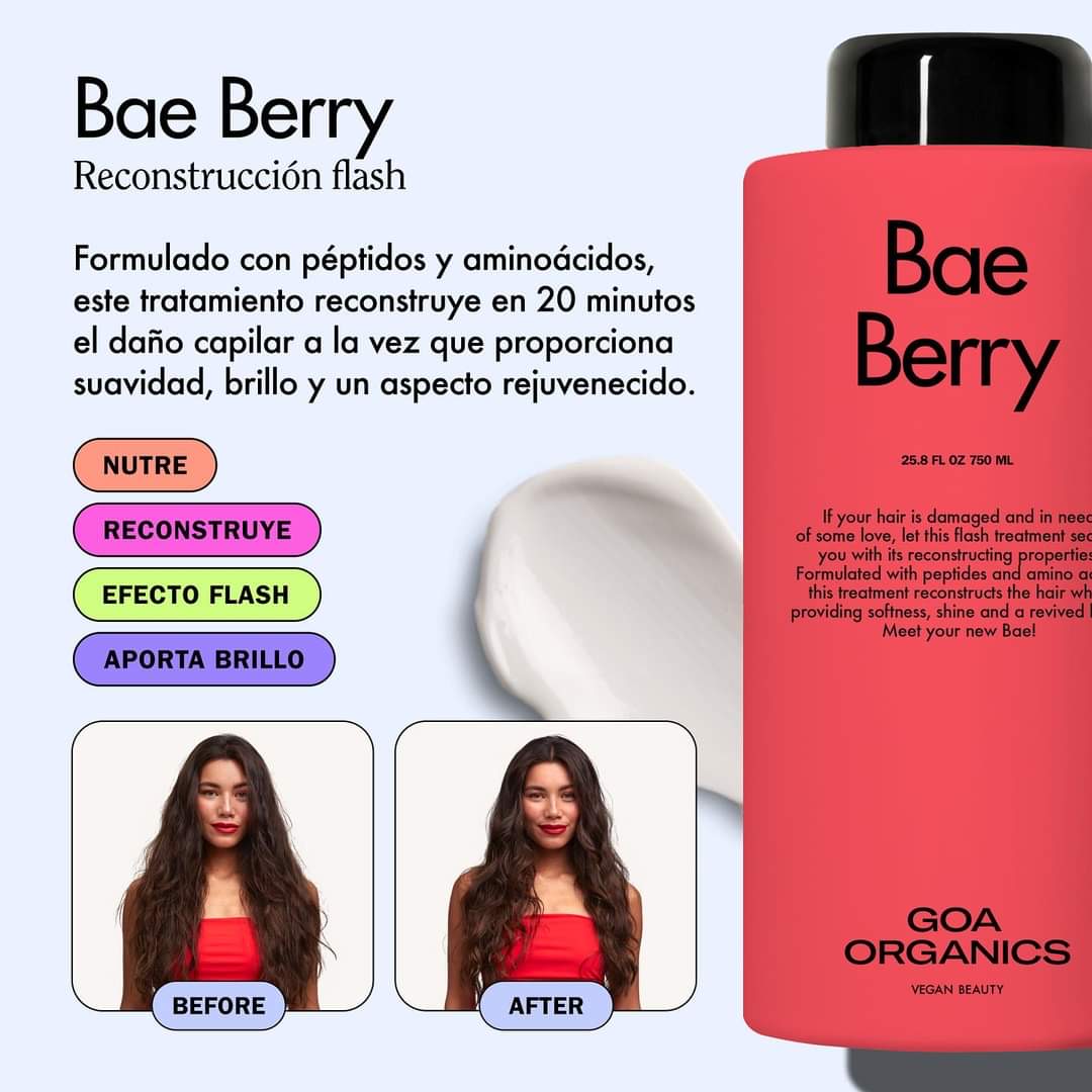 La fórmula de Bae Berry tiene como principal función la recuperación rápida del cabello, fortaleciendo la fibra dañada, reduciendo la rotura y mejorando el aspecto natural del cabello.